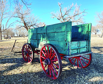 Wagon: A wagon reminiscent of those used on the trail. Located at Boggsville Historic Site. Photo by Jessica Hughes