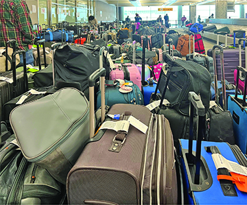 DIA In Disarray: A sea of luggage remained in January 2023 as weary travelers searched for their lost belongings from delayed or cancelled holiday flights. Photo by Chelsea Rummenie