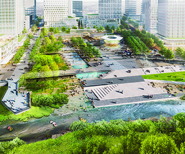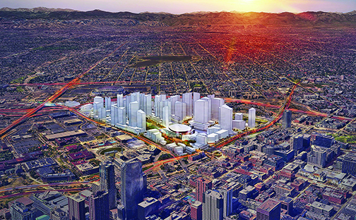River Mile: The ownership of the Denver Nuggets purchased 62 acres of land along the South Platte River, which presently houses Elitch Gardens Amusement Park. The site will feature tall skyscrapers. Photo Courtesy of Revesco Properties