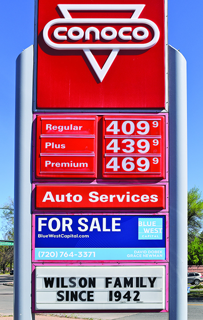 For Sale: The sign on the Conoco station at 724 S. University Blvd. has the words “For Sale” below the gas prices. Ken Wilson and his two sisters signed with a real estate agency in February. The Wilson family has owned the gas station since 1942.