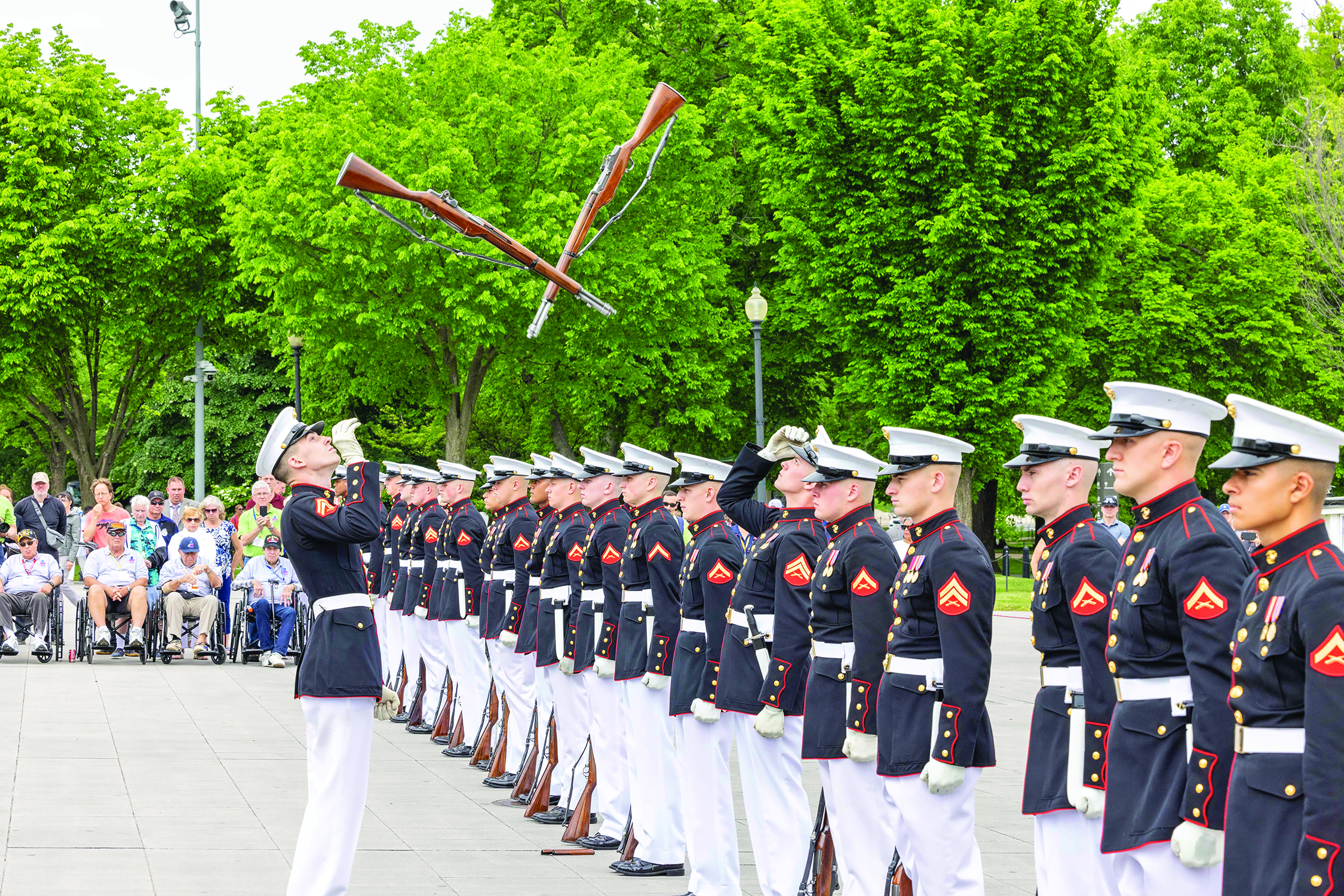 Honor Guard: The U.S. Marine Corps Honor Guard performed for the veterans near the Lincoln Memorial Reflecting Pool.