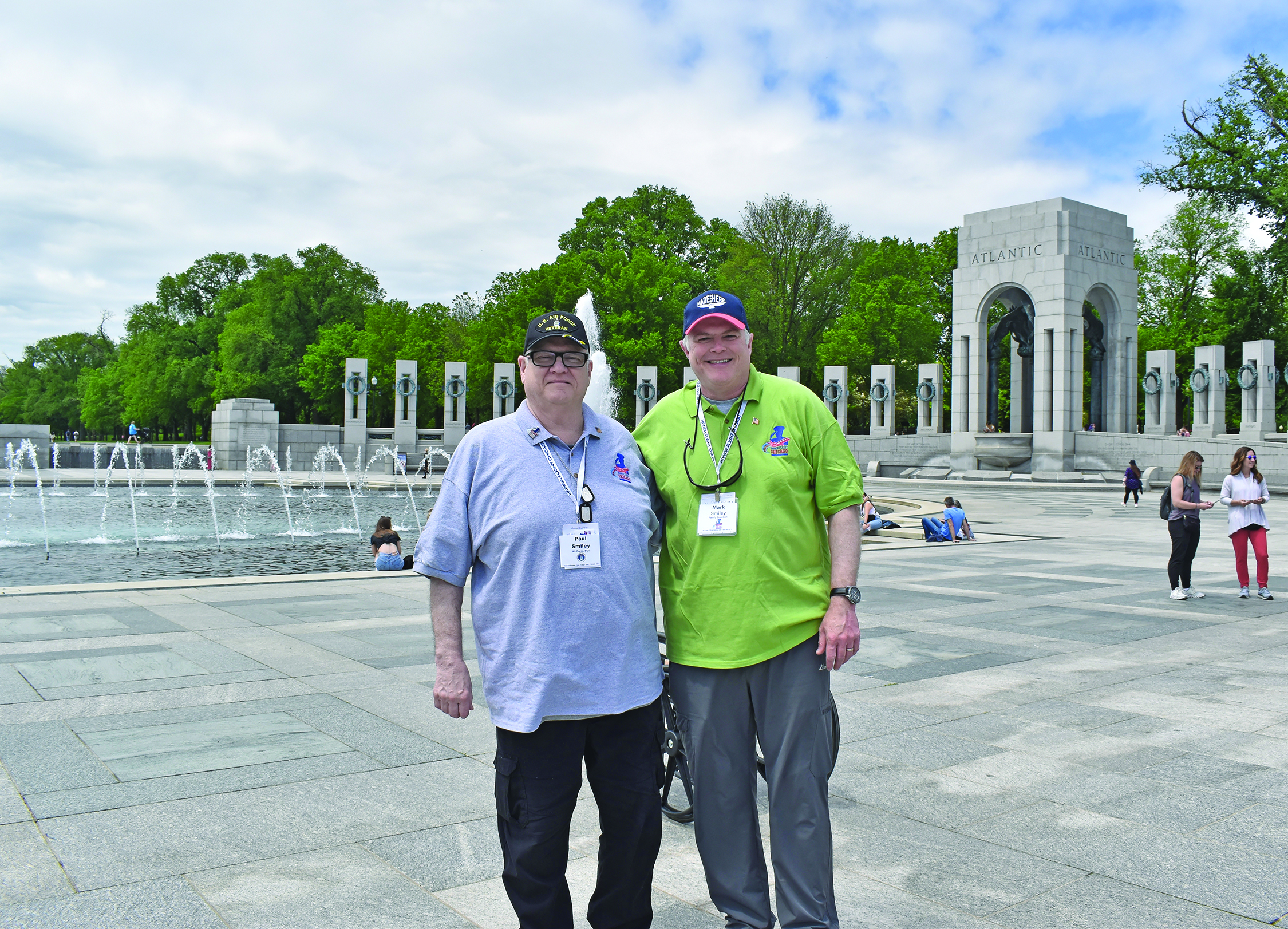 WWII Memorial: Paul Smiley, left, and Mark Smiley at the World War II Memorial in Washington, D.C. The WWII Memorial opened in 2004 and honors the 16 million who served in the armed forces of the U.S., the more than 400,000 who died, and all who supported the war effort from home.