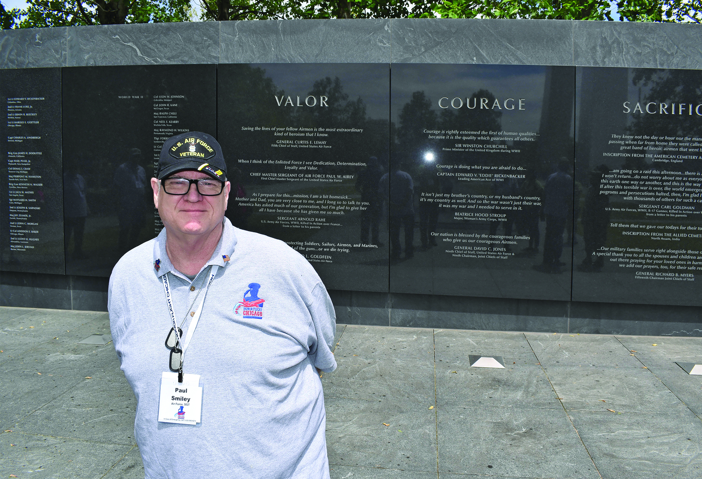 “Honor Flight Chicago brought many emotions to me as I shared the experience with my son [Chronicle Executive Editor Mark Smiley] who served as my guardian,” said Paul Smiley, Air Force Veteran, 1968-1972. “Visiting the memorials throughout Washington, D.C., paying homage to our fallen heroes, and to those traveling with us who served our country was awe inspiring and memorable.”