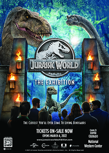 After record-breaking performances in Dallas, Texas, the Jurassic World Exhibition will open in Denver on March 4, 2022, at the National Western Center, located at the Washington Street exit of I-70. For the first time ever, Denver fans of the Jurassic World film and television franchises can experience the dinosaurs in their own community inside a 20,000 square foot immersive experience.