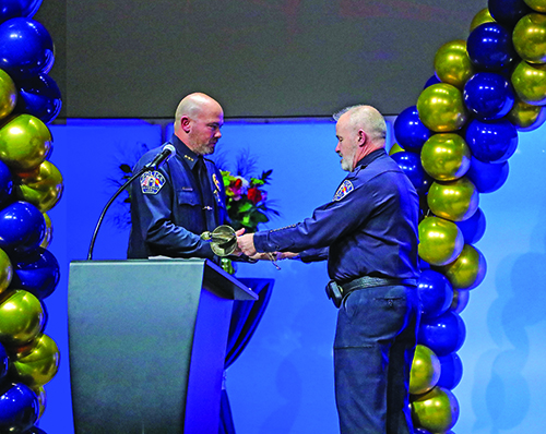 Barret O’Brien (left) poses with retired Glendale Police Chief Joe Haskins, lifelong friends whose bond has remained strong through the years of service and community involvement.