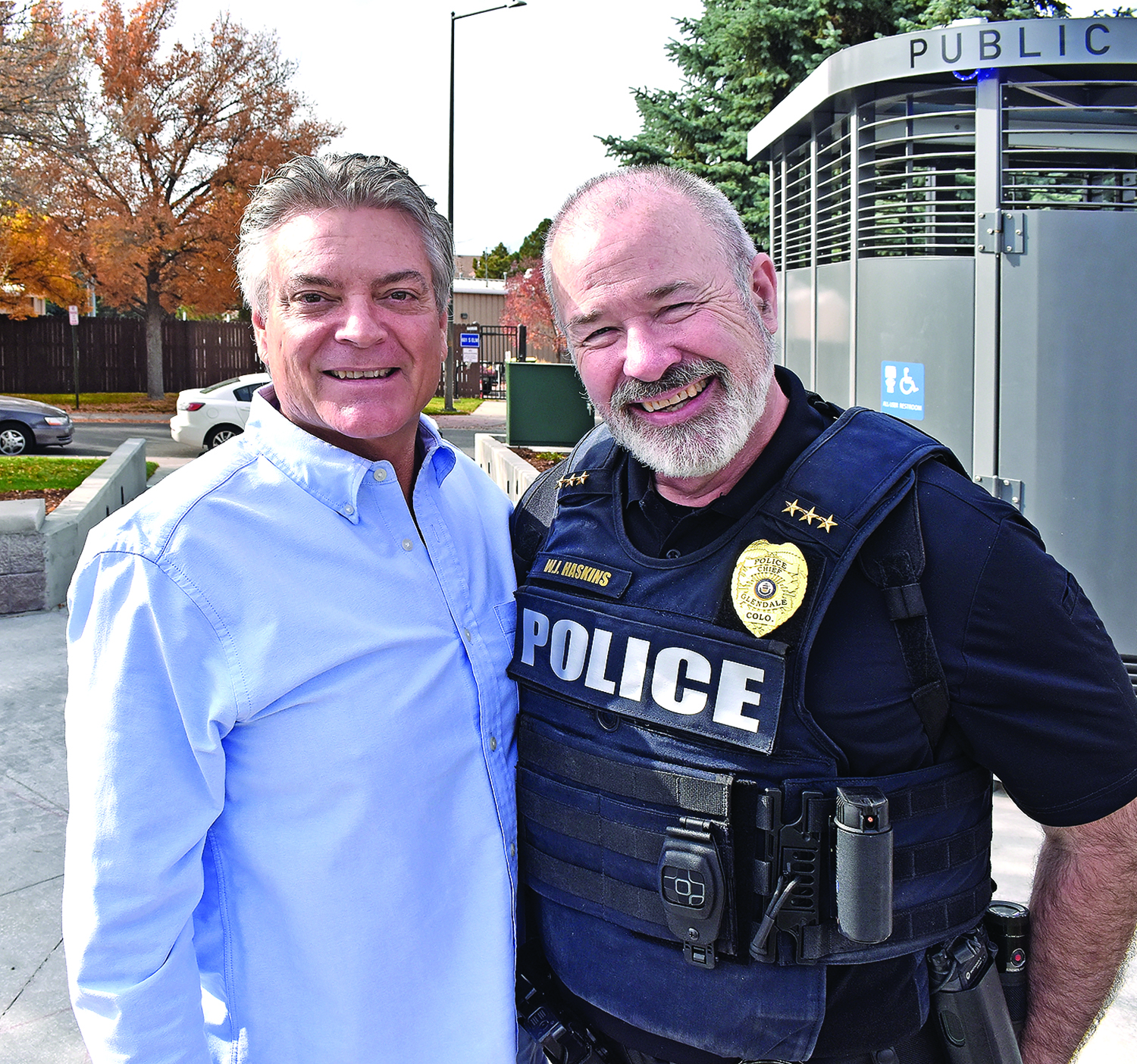 Barret O’Brien, Chamber Board Member, left, and Joe Haskins, Glendale Chief of Police.