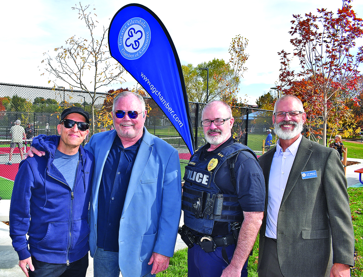 From left to right: Storm Gloor, Glendale Mayor Pro-Tem; Mike Dunafon, Glendale Mayor; Joe Haskins, Glendale Chief of Police; and Josh Bertrand, Glendale Deputy City Manager.